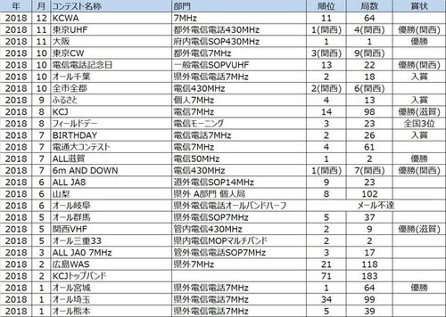 2018年に参加したコンテストの結果が出そろいました。 年間の賞状率は、後半に追い上げて46%と、予想外に高い数値になりました。 2019年は、既に半分経過していますが、後半も楽しみたいと思います。