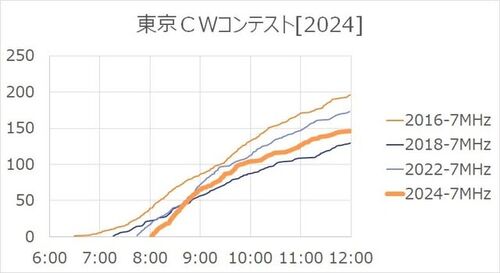 東京CWコンテストに参加。 普段通りに起床して移動したので8時から運用開始となった。 開始直後はコンディションに助けられて、良いペースで交信が進んだ。 中盤以降は各局の信号が不安定になり、交信数が伸びなくなっていった。 昨年楽しめた14MHzの調子は…